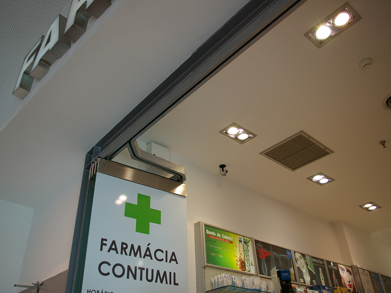 Com o sistema Doorflex Classic, a Farmácia Dolce Vita ganha uma maior visibilidade.
